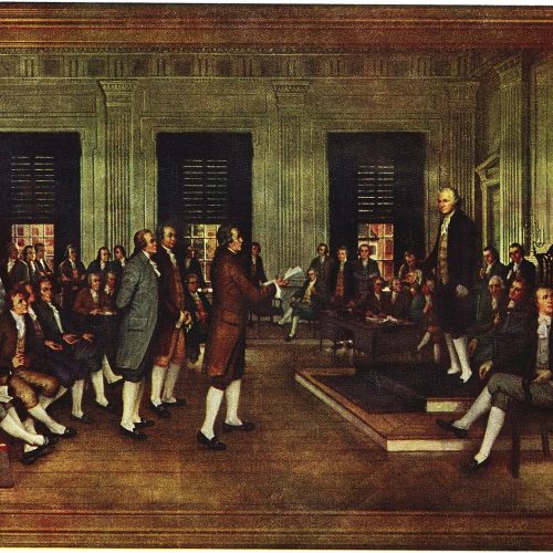 Image: ‘The Adoption of the U.S. Constitution in Congress at Independence Hall, Philadelphia, Sept. 17, 1787’ (1935), by John H. Froehlich.jpg, Dec. 31,1935, from John F. Froehlich. Retrieved from: https://commons.wikimedia.org/wiki/File:%27The_Adoption_of_the_U.S.Constitution_in_Congress_at_Independence_Hall,_ Philadelphia,_Sept._17,_1787%27%281935%29,_by_John_H._Froehlich.jpg, used under Wikimedia Commons.